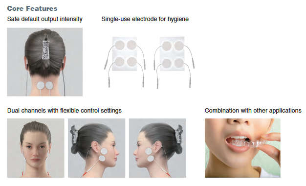 • 2 channels with flexible control settings to treat lateral and bilateral TMJ